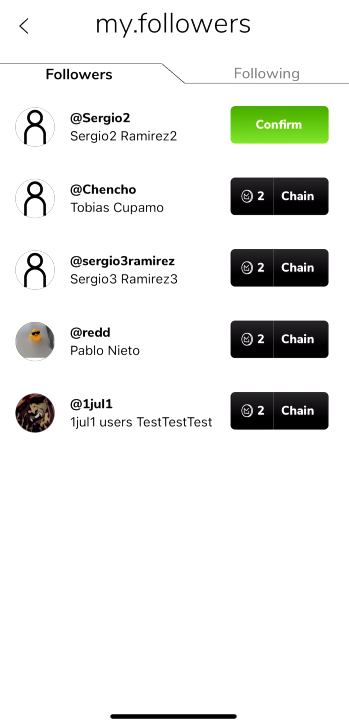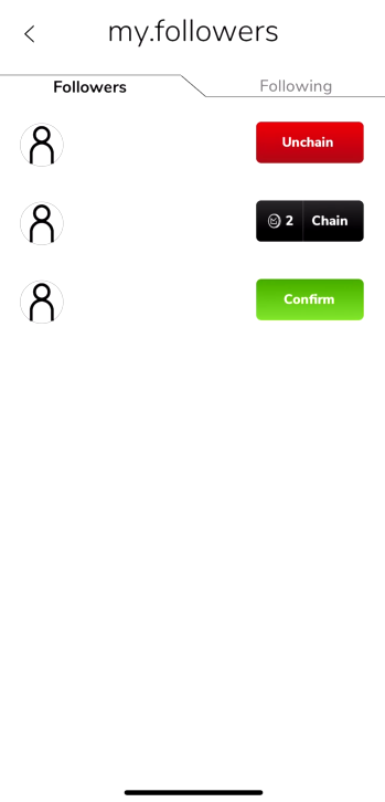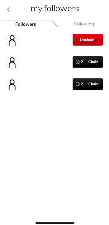 CHAINSmy.help.chains How to view my chainsOn the bottom bar, press the burger menu, then select the chains option. You will find 'my.chains' and 'chained with me' tabs