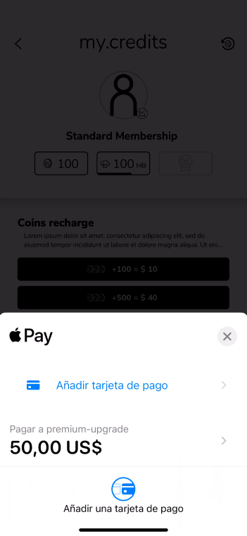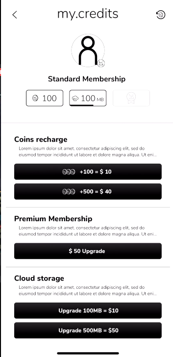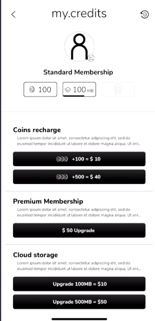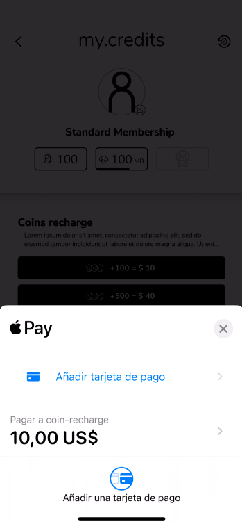 MEMBERSHIPmy.help.membership How to recharge coinsIn order to use some my.gallery features, you will need to purchase some coins. To do so, press an option between 100 or 500 coins, then add a payment method through Apple Pay and complete the purchase steps