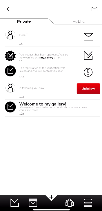 NOTIFICATIONSmy.help.notifications About Private NotificationsYou will see here your private notifications such as chains, showroom invites, and transfers with people you mutually follow
